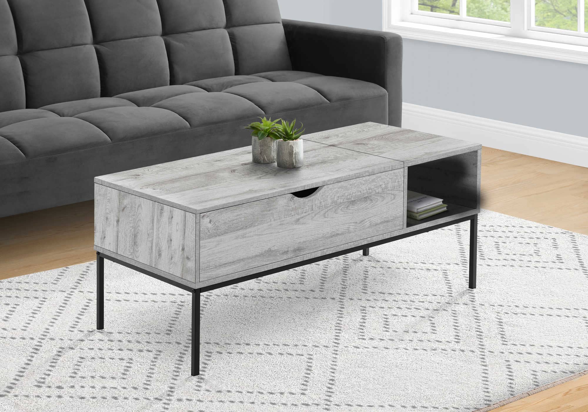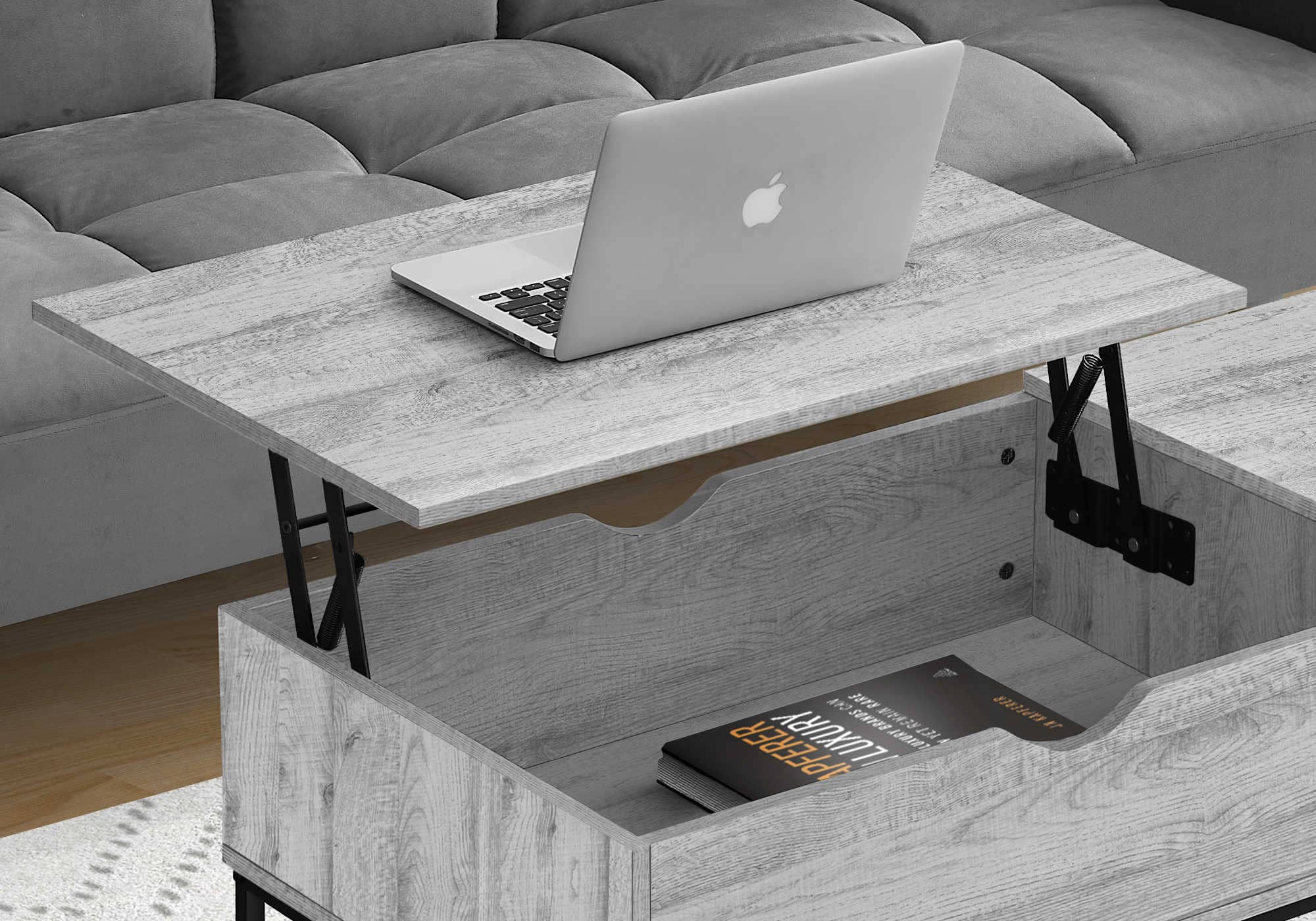 COFFEE TABLE – 42″L / LIFT-TOP GREY / BLACK METAL