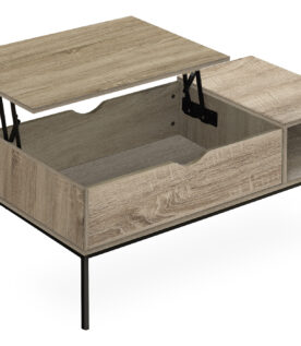 COFFEE TABLE – 42″L / LIFT-TOP DARK TAUPE / BLACK METAL